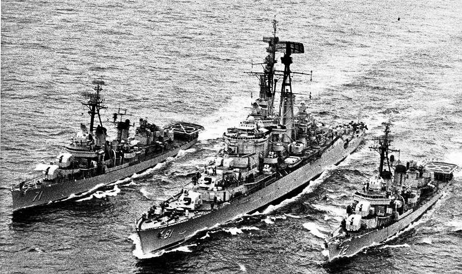 22 de diciembre 1981: Se incorpora el destructor antisubmarino BAP Guise a la Fuerza Naval del Pacífico, en ceremonia que se lleva a cabo en la Base Naval del Callao, presidida por el presidente de la República, arquitecto Fernando Belaunde Terry. (En la foto, el BAP Guise (DD 72) y el BAP Villar (DD 71) navegan en formación con el BAP Almirante Grau (CL 81)
